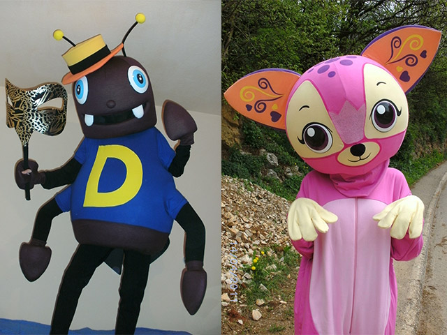 zdelava in prodaja maskot za marketinške kampanje, za klube, šole, maskote za animacijo in prireditve doma in v tujini!